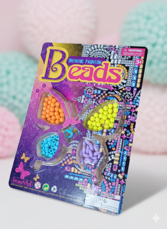 Set de Bijou de perlitas para armar pulseras y collares. En forma de mariposa, presentacion en blister.