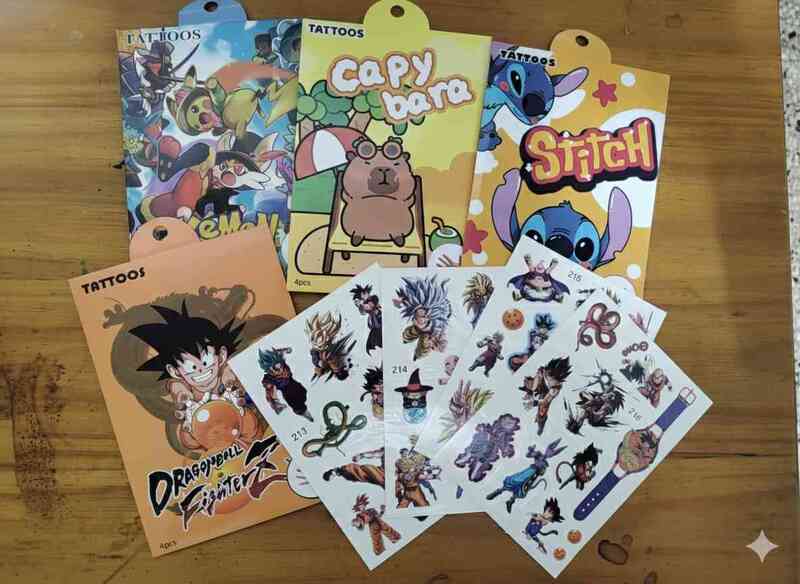 Sobre de 4 planchas de tatuajes temporales temáticos de personajes. Precio por sobre.