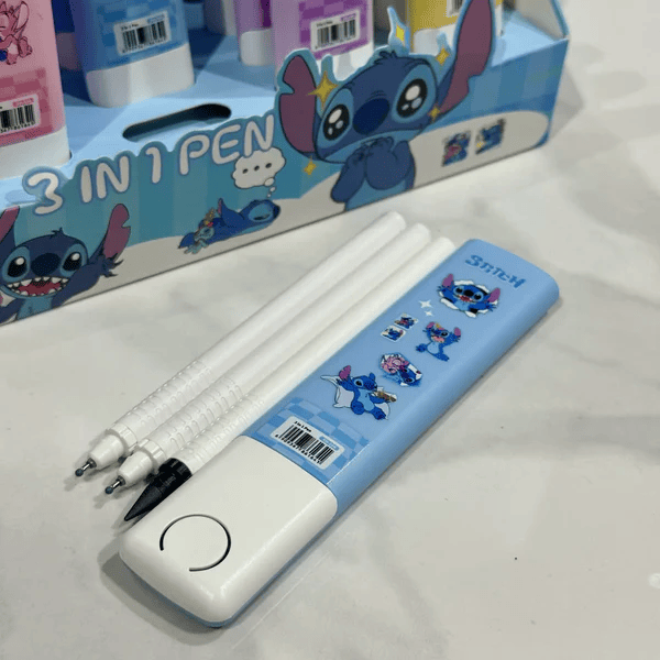 Set 3 en 1 stitch (boligrafo x2 y lapiz infinito)
