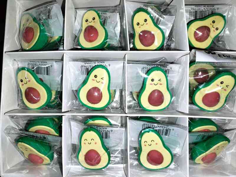 Caja de gomas de borrar x36 unidades vienen en distintas variantes, como paltas o huellitas de gato. y en distintos colores. venta por caja.