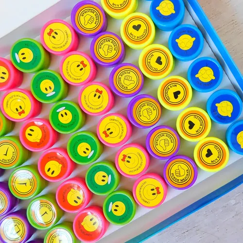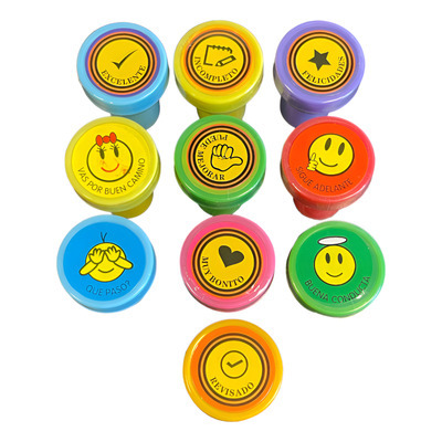 Sellos circulares con frases motivacionales pata trabajos y tareas. ideal para profesores y maestros