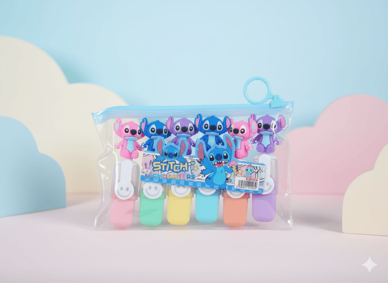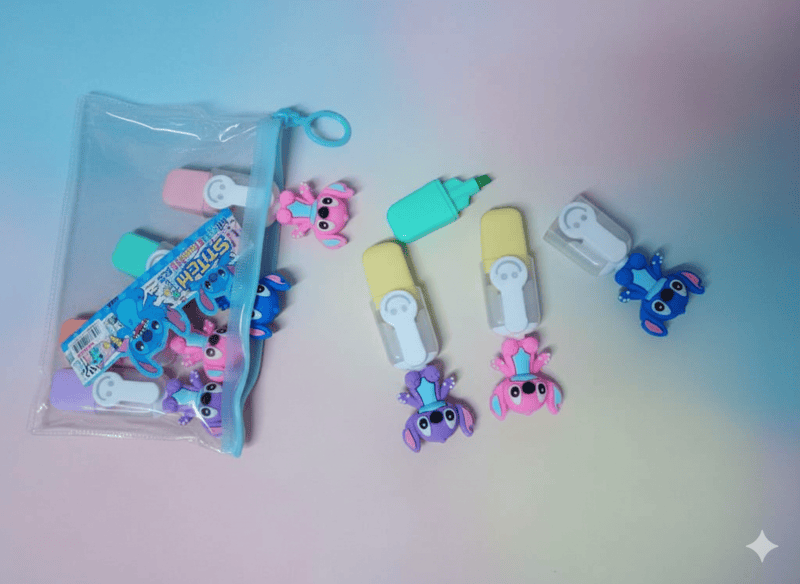 Resaltadores de personajes y figuras Kawai x6 unidades. En presentación de cartuchera en blister.