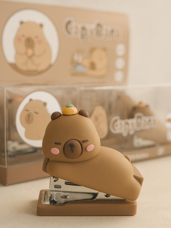 Abrochadora del personaje CAPYBARA, de alta calidad. en caja cristal. EXCELENTE ARTICULO excelente para escritorios personalizados o para sets de utiles kawai