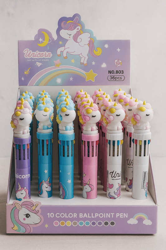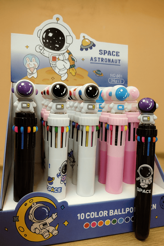 Boligrafos de 6 colores de personajes surtidos de astronautas y unicornios
