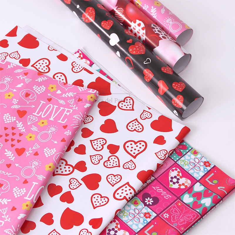 Imagen ilustrativa Paquete de 50 unidades de afiches de excelente calidad de 50cmx70cm. Con procesos de stamping dorado de estilo moderno. cada paquete de 50 unidades trae variedad de 5 modelos temáticos; entre ellos: Corazones, Fiesta, líneas , moderno, globos, etc.