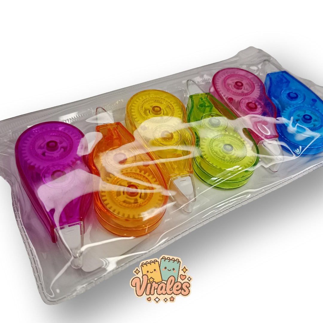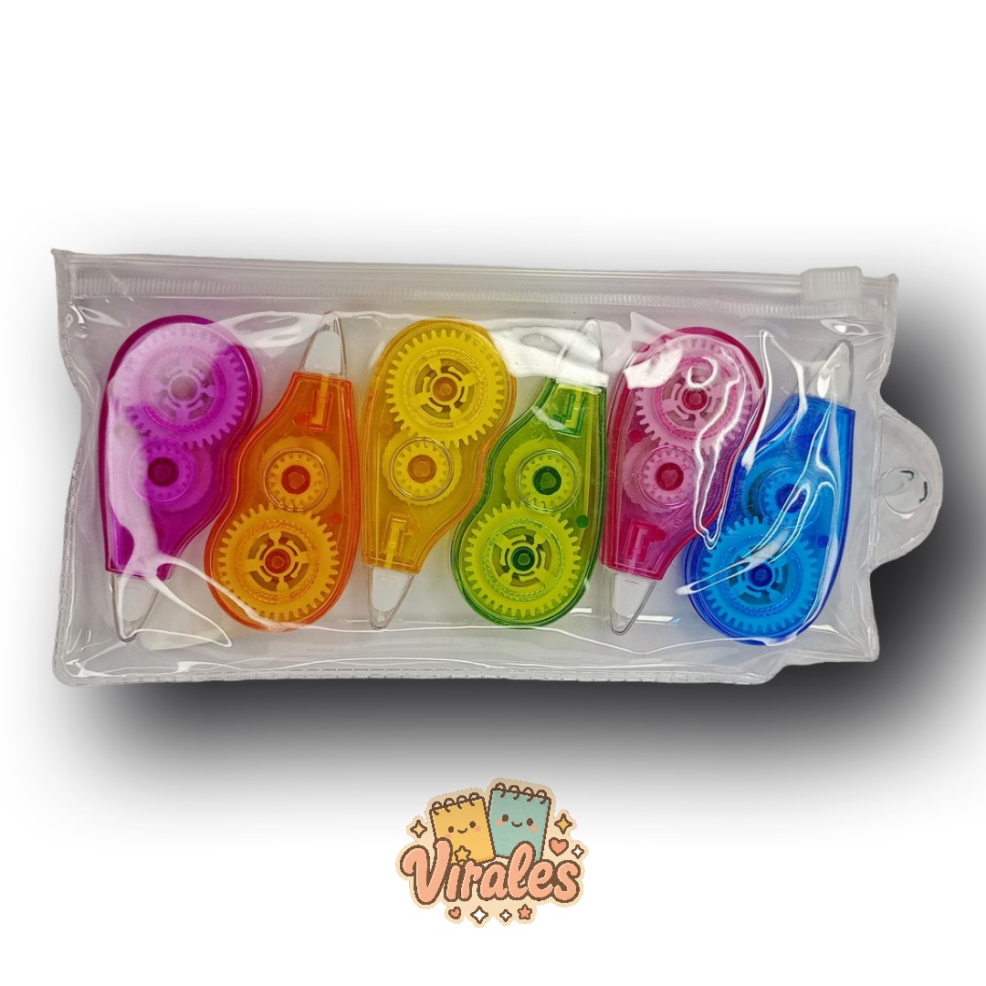 corrector en cinta: - 6 unidades por blister - presentacion en cartuchera transparente super estetica - distintos colores variados Una manera muy practica y super prolija de corregir errores