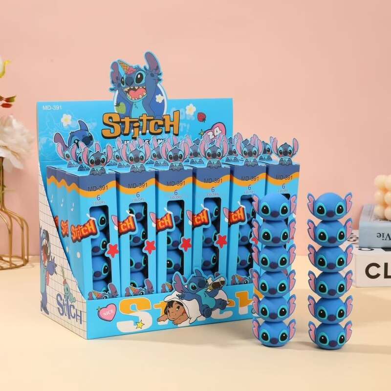 Caja de Resaltadores de cabezas de Stitch x6 unidades de distintos colores.
