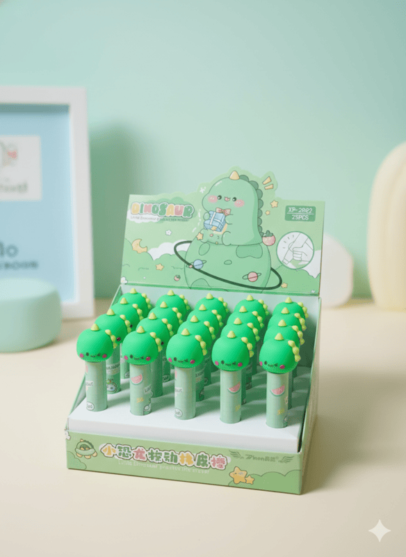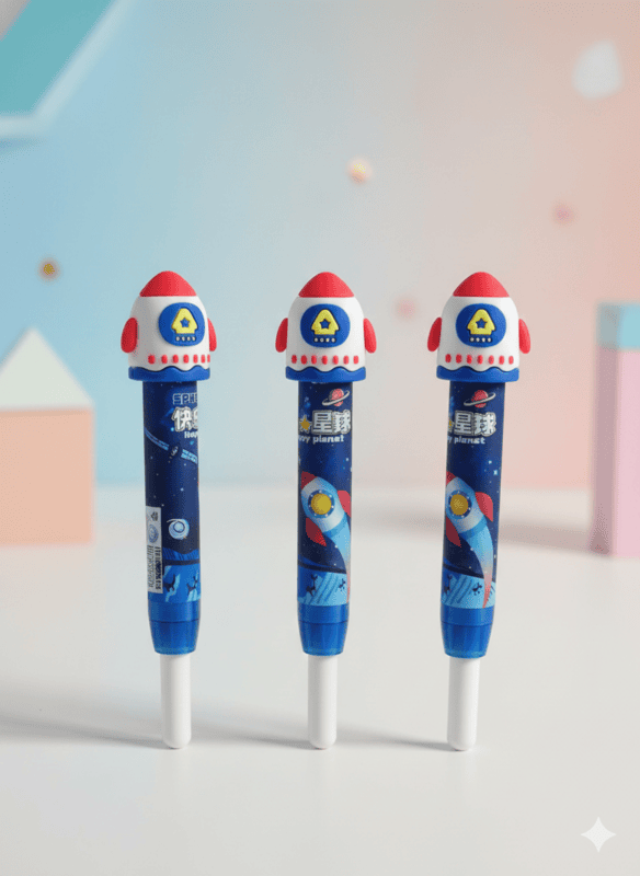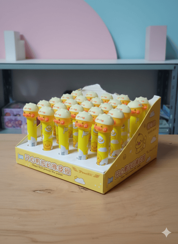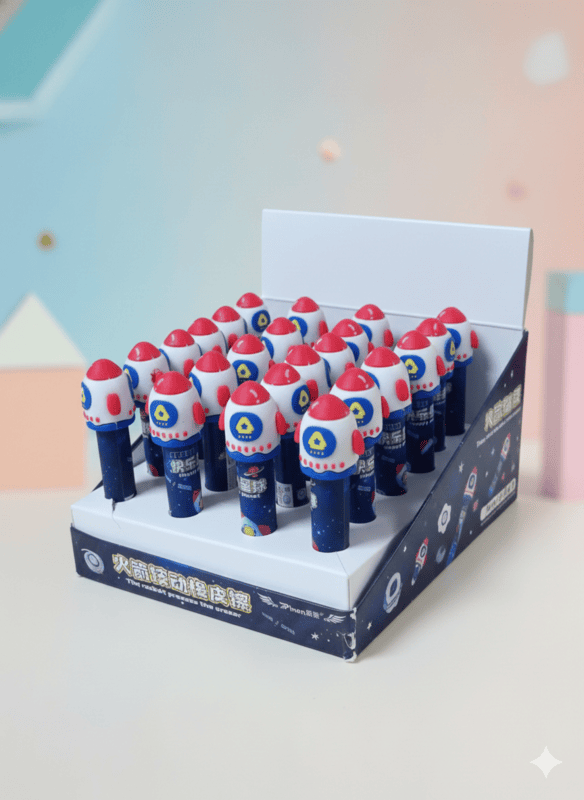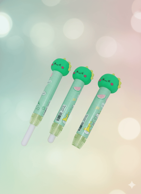 Gomas retractiles, de personajes a elección (patito, nave espacial o dinosaurio). Producto de alta calidad.