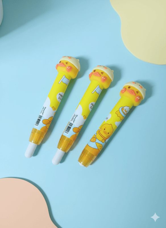 Gomas retractiles, de personajes a eleccion (patito, nave espacial o dinosaurio). Producto de alta calidad.