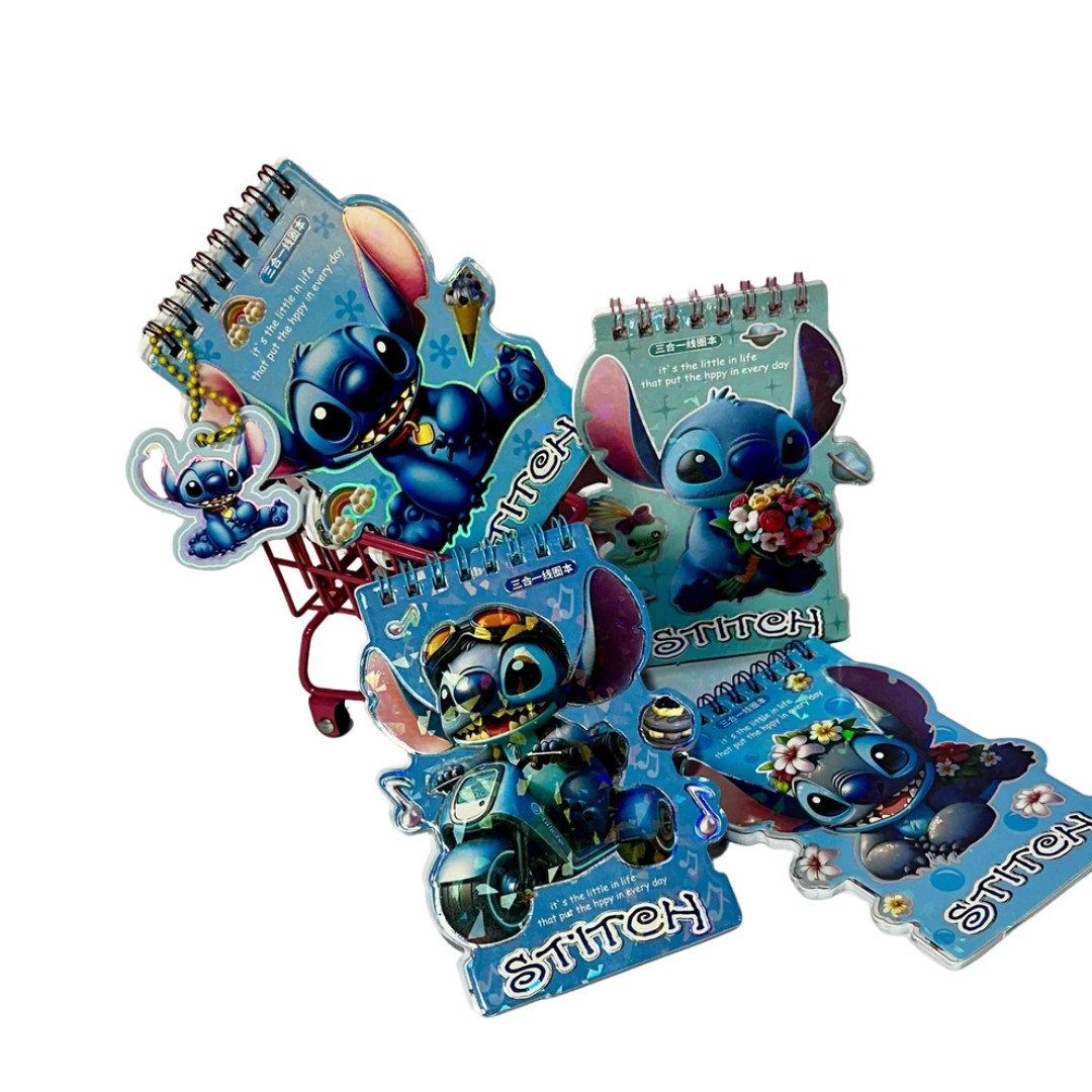 excelente calidad Incluye mas de 10 paginas de stickers y anotador. + llavero para colgar!! Surtido en 4 modelos de stitch