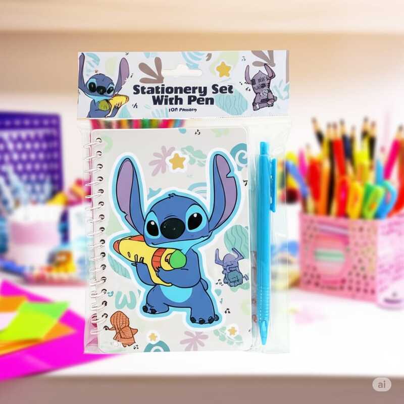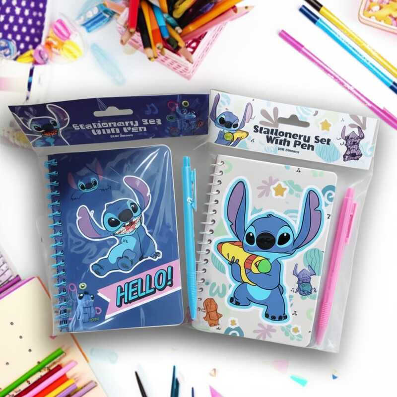VAnotador de Stitch con Lapicera Incluida Anotador compacto y funcional con diseño exclusivo de Stitch, perfecto para tomar notas, planificar o registrar ideas en cualquier momento. Su tamaño práctico permite transportarlo cómodamente en carteras, mochilas o escritorios. Cuenta con tapas resistentes impresas a todo color con ilustración temática, encuadernación firme y hojas de papel de gramaje óptimo que facilitan una escritura fluida. Incluye lapicera a juego, sujeta mediante soporte incorporado, para tener siempre a mano la herramienta de escritura. Ideal para uso personal, escolar o como obsequio, combinando practicidad, calidad y un diseño encantador que destaca en cualquier lugar.